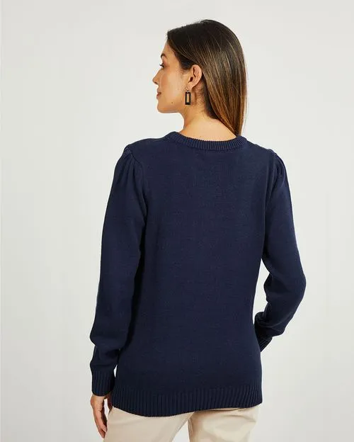 - Round neck sweater with puffed sleeves, offering a chic and feminine look that adds a touch of elegance to any outfit.