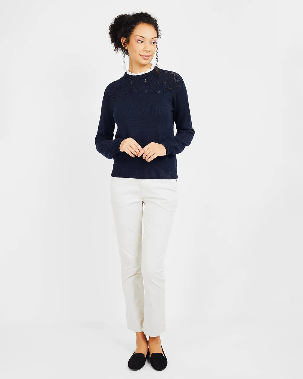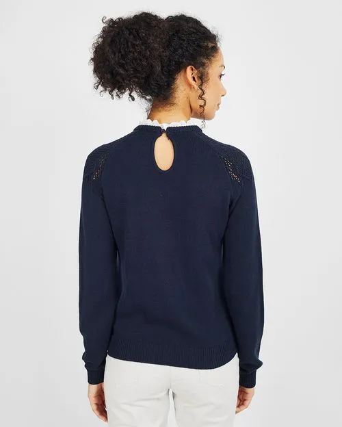 - Features a broderie collar, enhancing the sweater with a delicate and intricate detail that adds a touch of elegance.